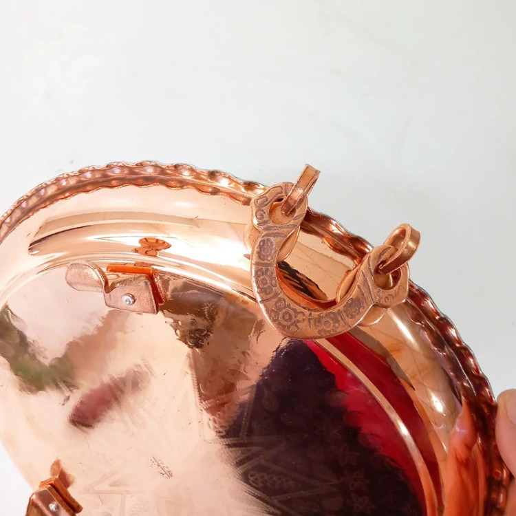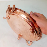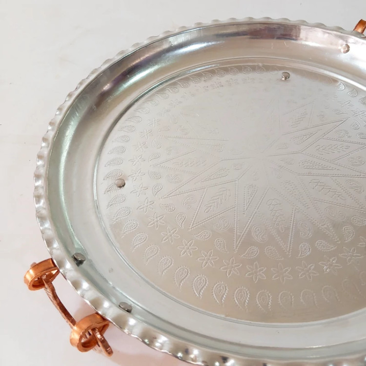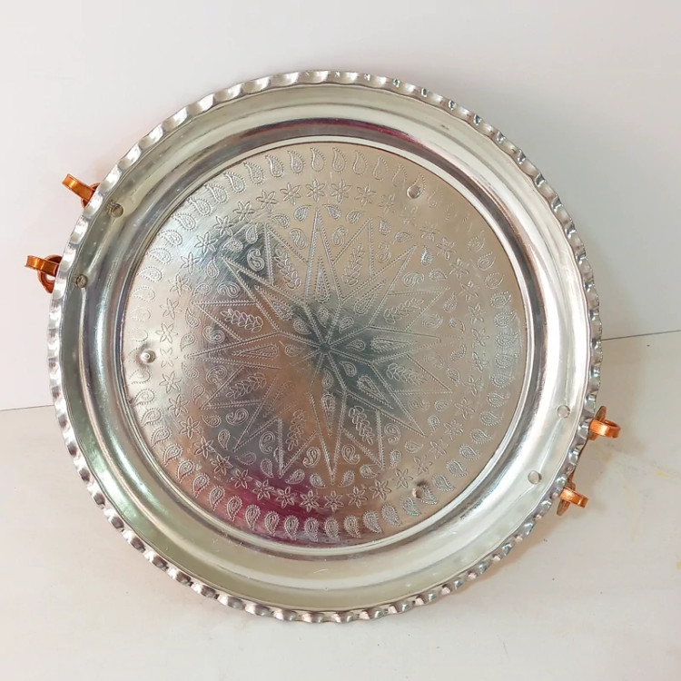سینی دسته و پایه دار تمام مس زنجان قطر 34
