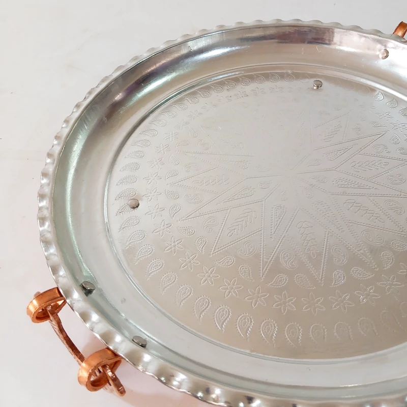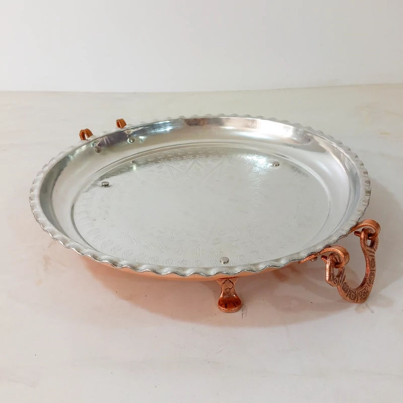 سینی دسته و پایه دار تمام مس زنجان قطر 34