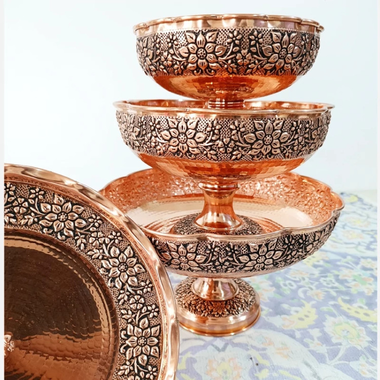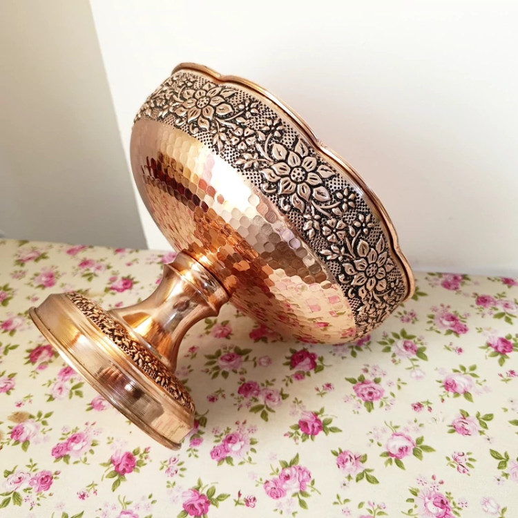 ظرف مسی گلبرگ گل برجسته کاری قطر 22 برای آجیل و میوه