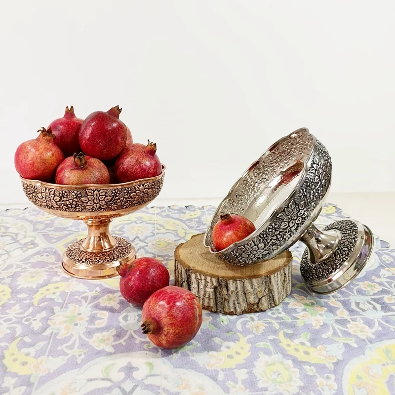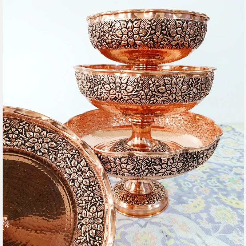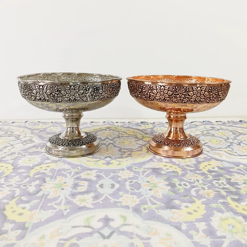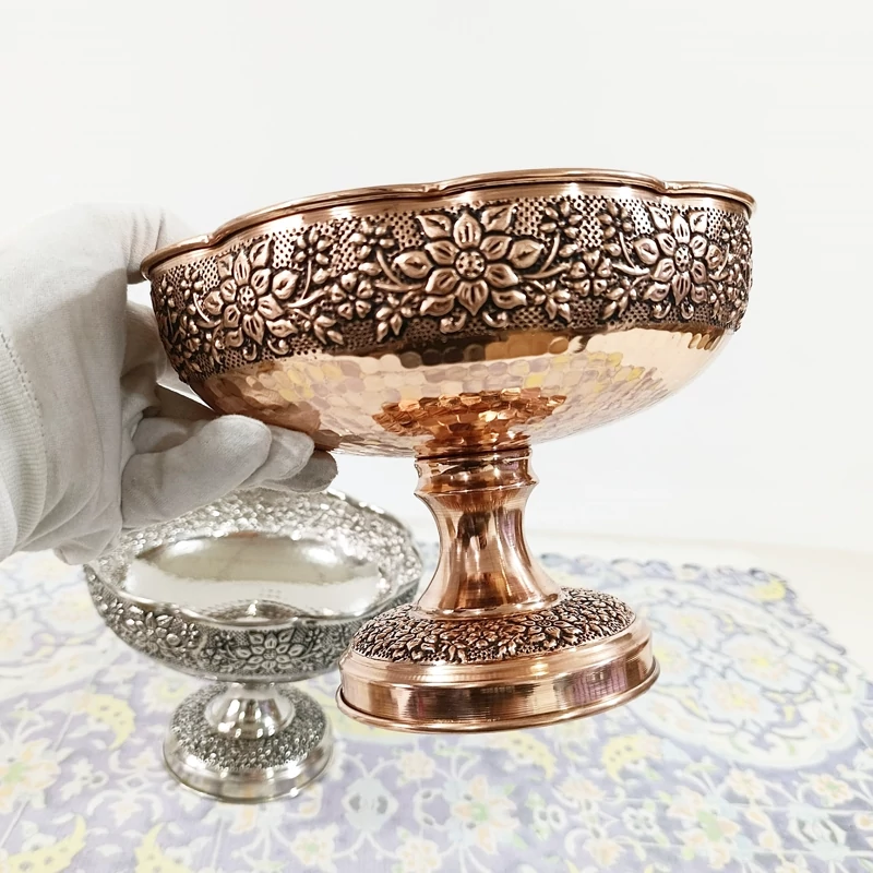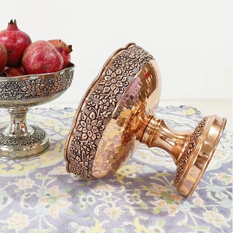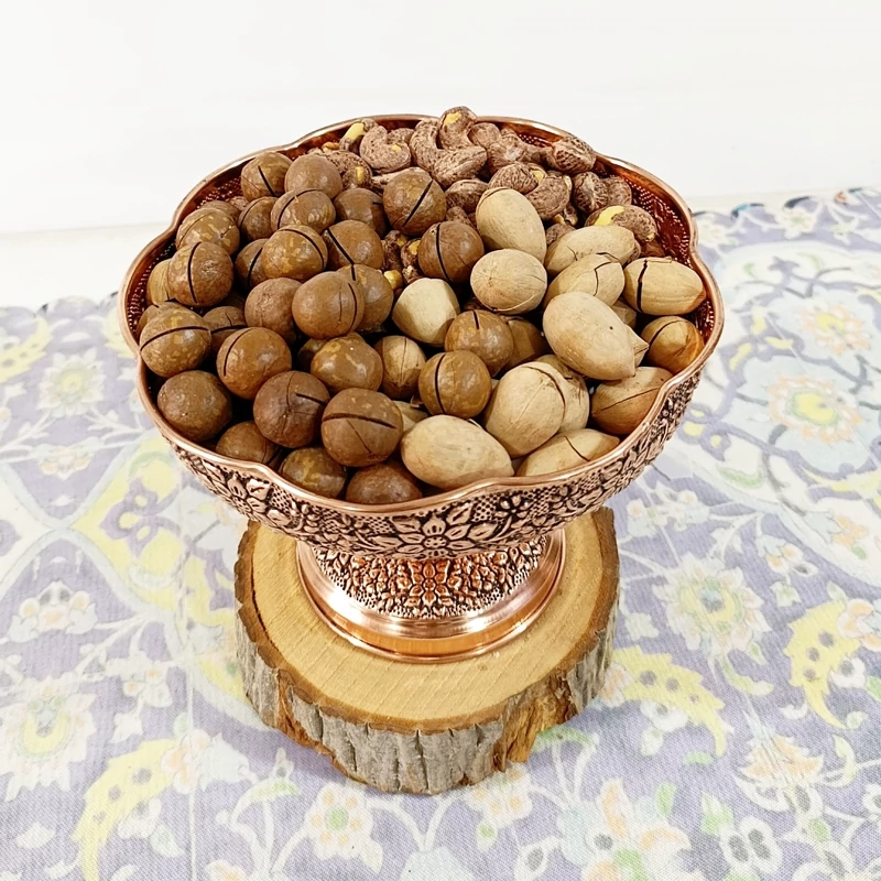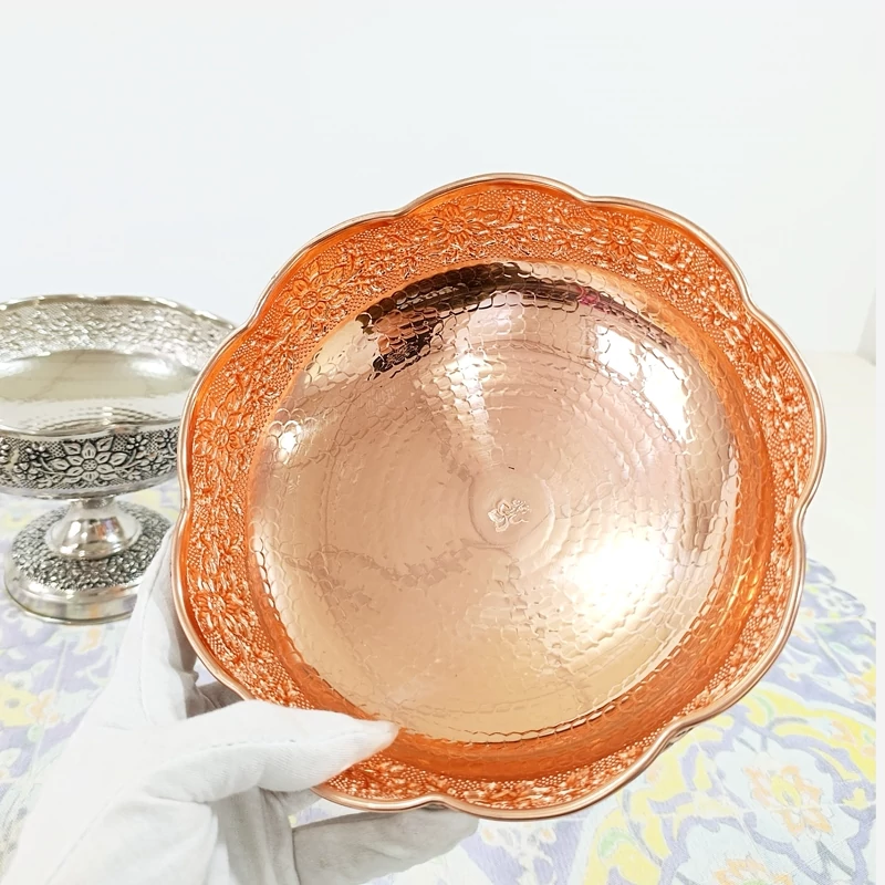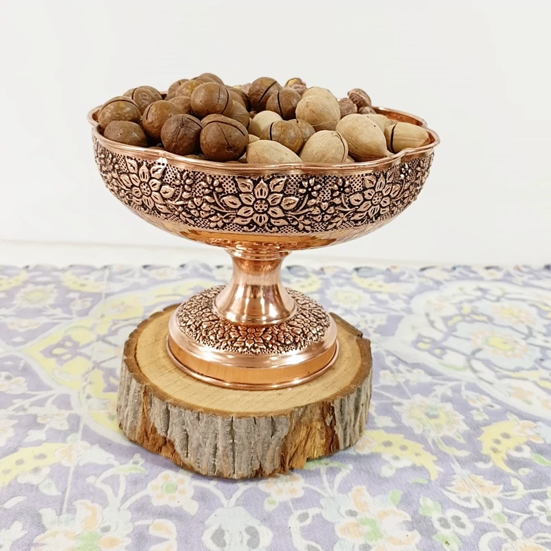 ظرف مسی گلبرگ گل برجسته کاری قطر 22 برای آجیل و میوه
