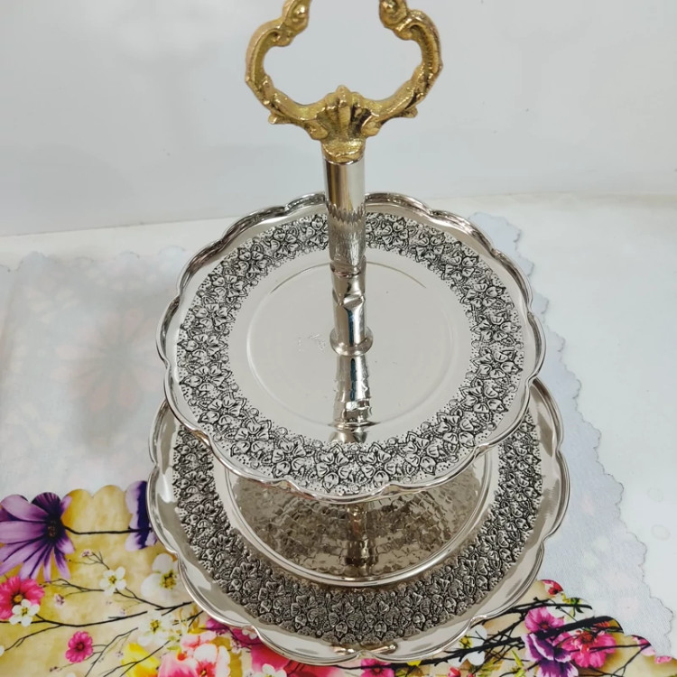 شیرینی خوری دو طبقه گلبرگ زیبا براق چکشی کار درجه یک رنگ ثابت