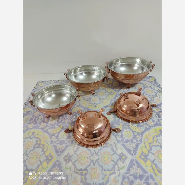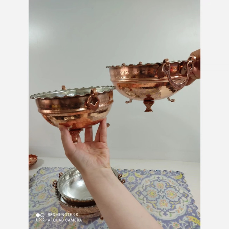 کاسه مسی گوشواره دار در 5 سایز داخل قلع اعلا میوه یا سوپ آجیل و... ارسال رایگان