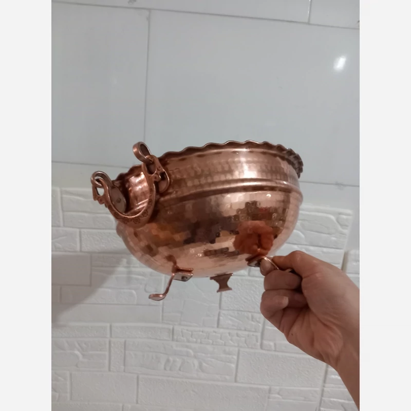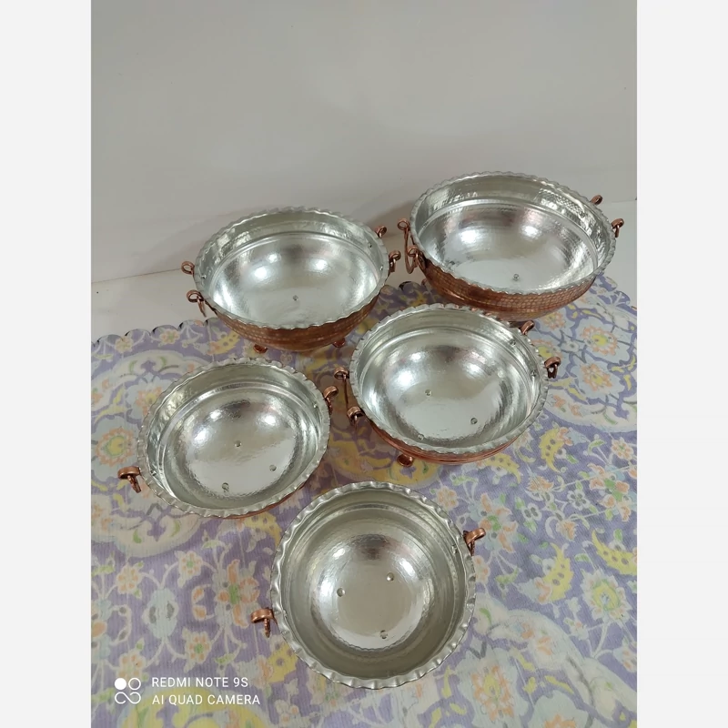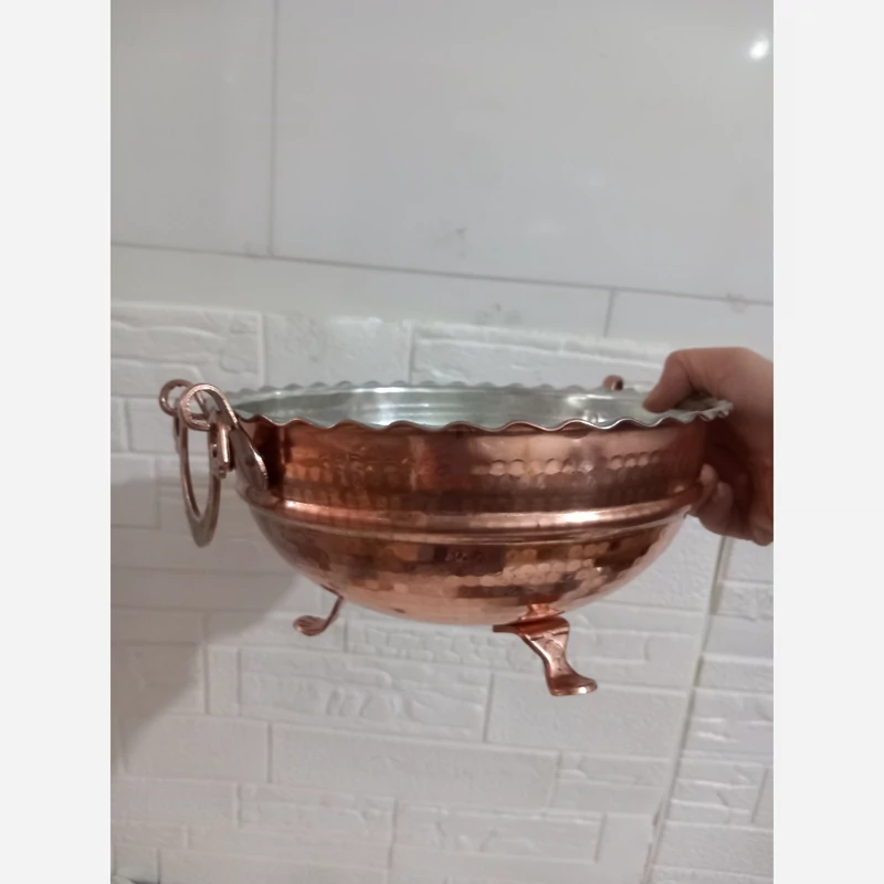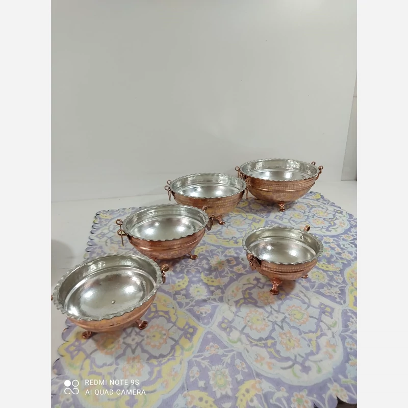 کاسه مسی گوشواره دار در 5 سایز داخل قلع اعلا میوه یا سوپ آجیل و... ارسال رایگان